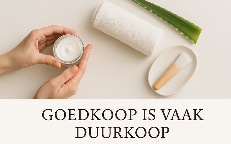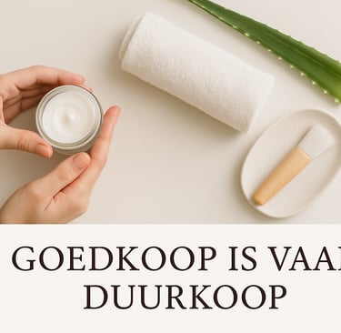 Je budgetbehandeling of kortingsactie ziet er aantrekkelijk uit, maar verliest op termijn: je huid komt niet in ritme, de juiste mechanismen worden niet getraind, jij blijft opnieuw beginnen — en dus blijft je portemonnee open.